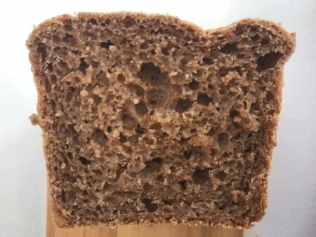 When I ordered this bread I thought it was overpriced. However, I began to feel differently when I hefted the heavy package I received. You get what you pay for–lots of densely-packed nutrition. Also it is easy to cut and presents a mellow sourdough taste.