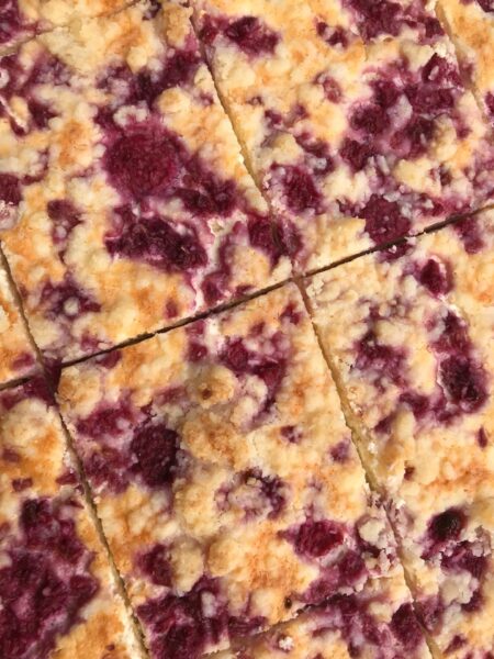 Raspberry Coconut Farmer’s Cheese Cake is one of our most popular cakes. Lemon flavored farmer’s cheese, coconut shortbread crust, and raspberries deliver a wonderful flavor combination perfect for many occasions.
